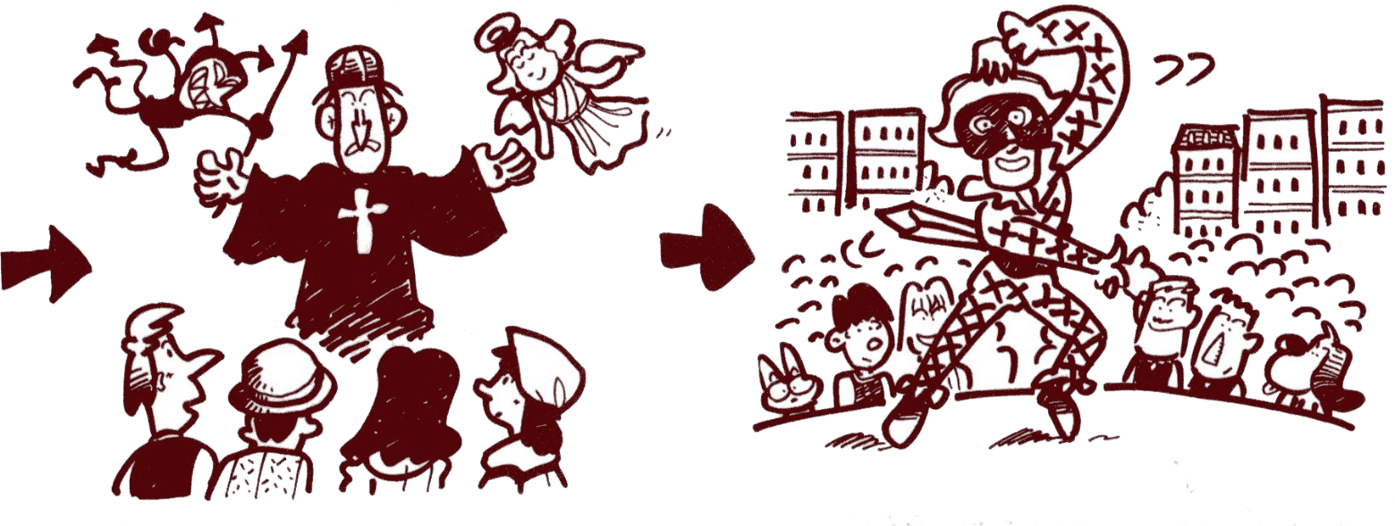 人々のために、体を使った演技で聖書の物語などを伝えていた時代もあったんだ。